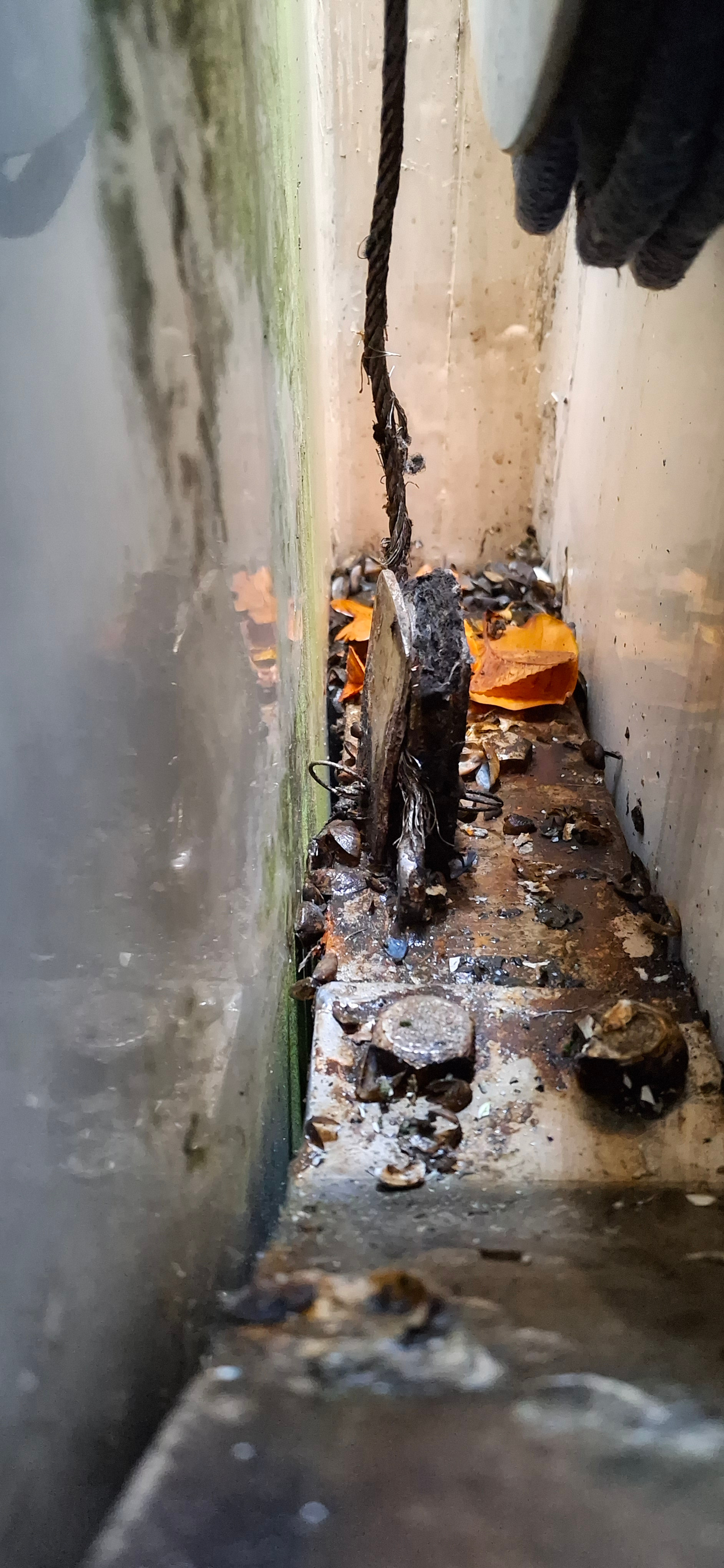 Er zitten bij jou mosseltjes aan de bovenkant. Geinig hoe kunnen die daar nou komen? Misschien met op en neer halen naar boven geschoten?