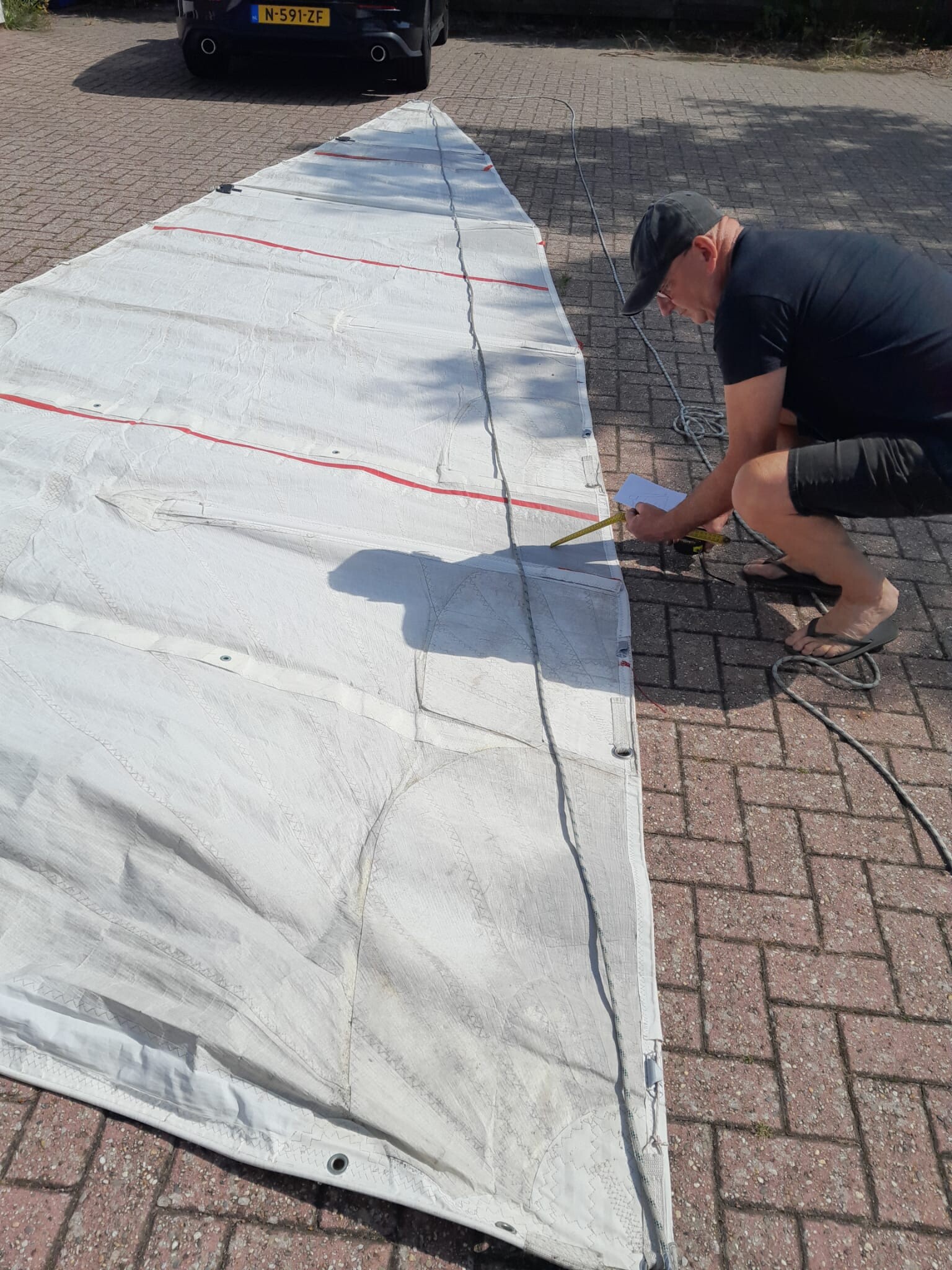 Laminaat grootzeil voor clever 23. `Star cut gesneden. 2 riffen, cunningham hole, gesloten onderlijk, bovenste 2 zeillatten doorgelat naar de mast. Perfect te trimmen. Er mankeert helemaal niets aan. Wel is het inmiddels 21 jaar oud. Dat is voor een laminaat zeil behoorlijk op leeftijd.