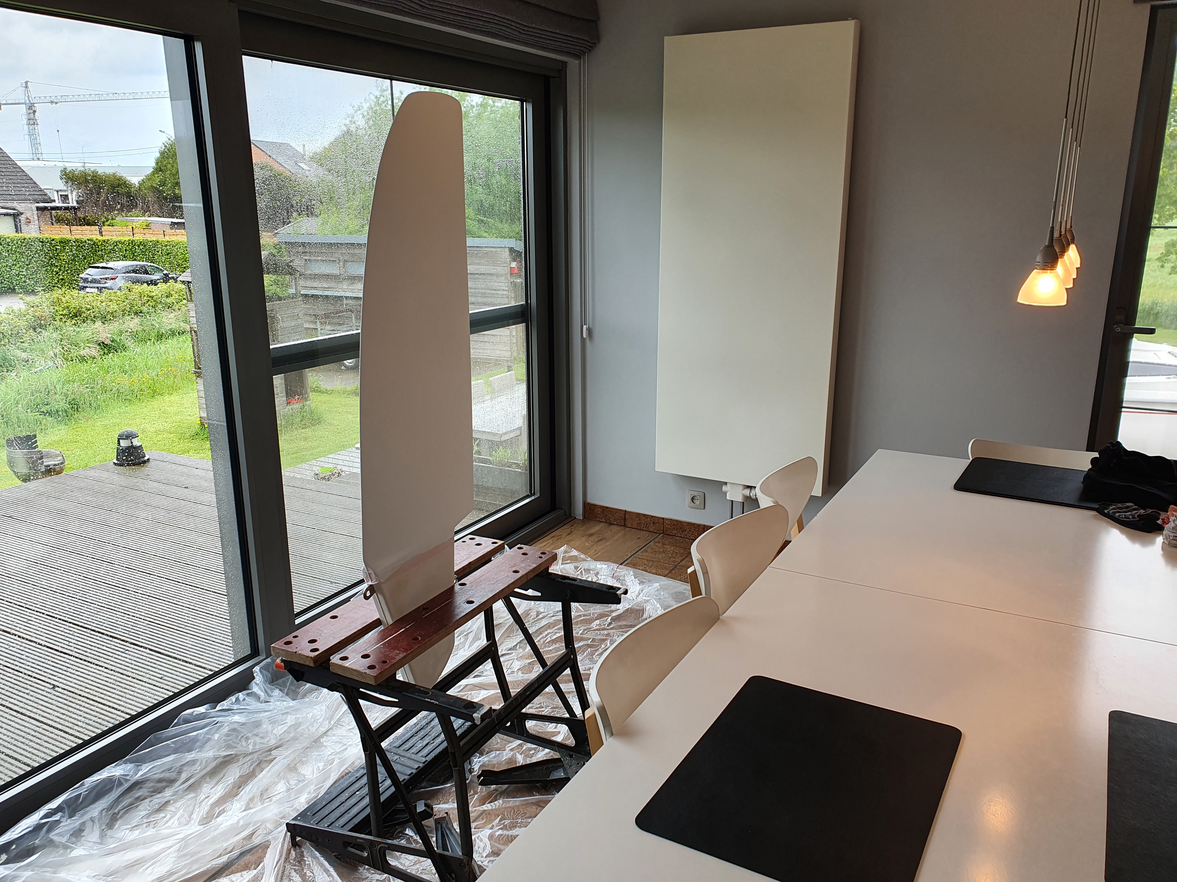 Tijdens de werken aan de garage kwam bovendien een slechte plek in de gelcoat (en later het laminaat) naar boven. Die hebben we dus ook maar in één beweging mee weg gewerkt.