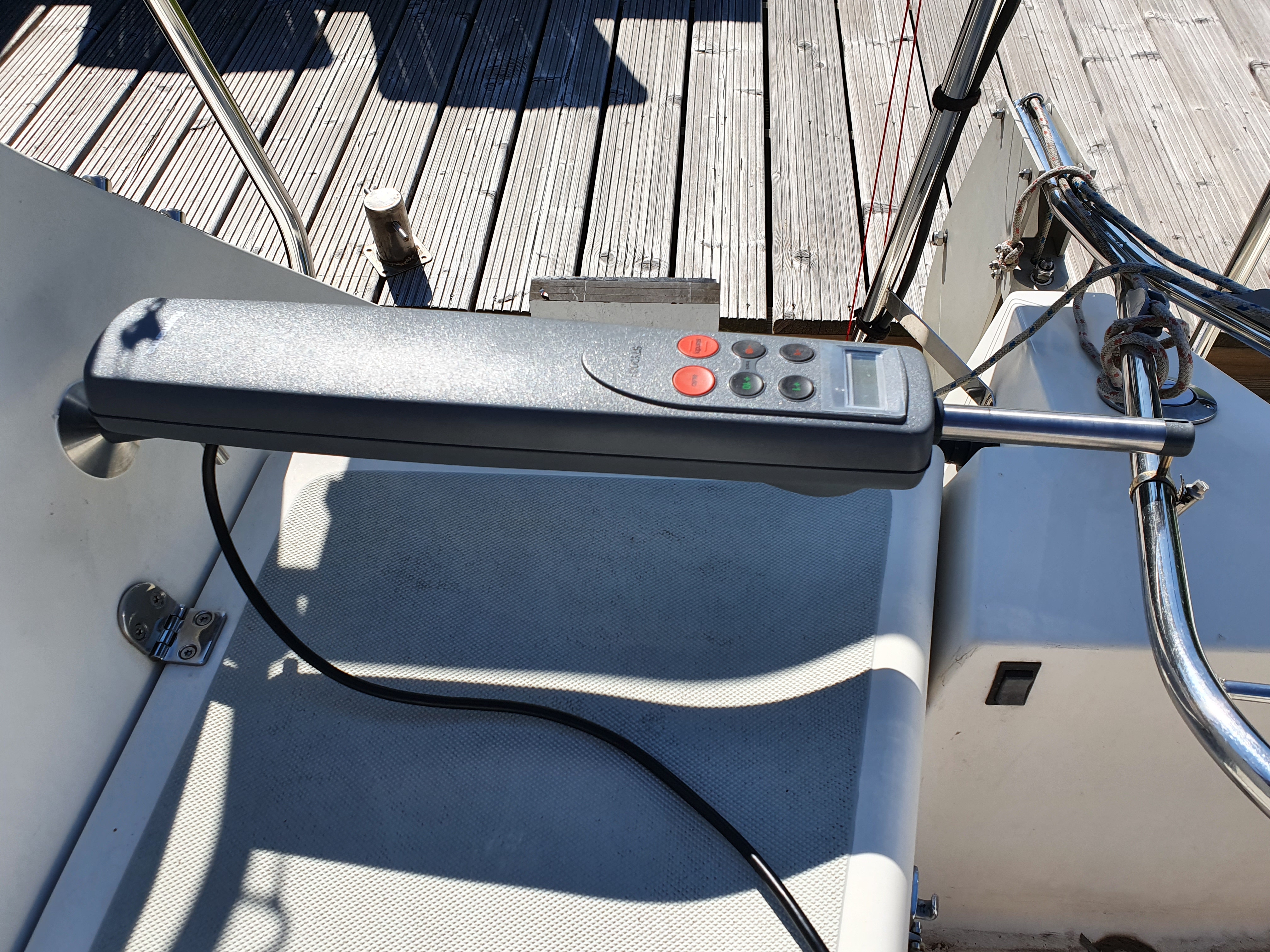 Om alleen te kunnen varen tikte ik eind 2020 een “james” op de kop. Al kwamen vandaag mijn dochters er achter dat hij Ray noemt. Maar deze automatisch piloot diende ook gemo,teerd te worden en dat liefst zonder gaten te boren in de romp.